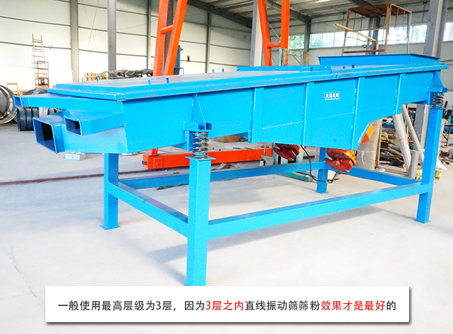 多層直線(xiàn)振動(dòng)篩主要用于粗碎或中碎之前的預(yù)先篩分,單層直線(xiàn)線(xiàn)振動(dòng)篩適合小戶(hù)型用戶(hù),篩分產(chǎn)量比較低的用戶(hù),多層直線(xiàn)振動(dòng)篩適合對(duì)產(chǎn)量需求比較大的用戶(hù),一般使用最高層級(jí)為3層,因?yàn)?層之內(nèi)直線(xiàn)振動(dòng)篩篩粉效果才是最好的,3層以上的直線(xiàn)振動(dòng)篩離振動(dòng)電機(jī)會(huì)比較遠(yuǎn),篩分效果就會(huì)變差