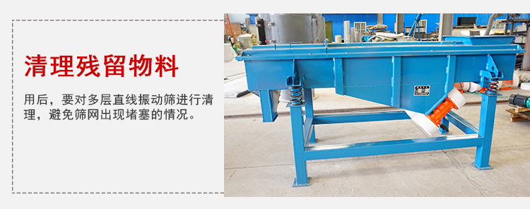 4、使用后,要對(duì)多層直線(xiàn)振動(dòng)篩進(jìn)行清理,避免篩網(wǎng)出現(xiàn)堵塞的情況。