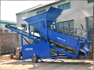 移動振動篩由直立振動電機作為激振源,電機上,下兩端安裝有偏心重錘,將電機的旋轉運動轉變為水平,垂直,傾斜的三次元運動,在把這個運動轉遞給篩面進行篩分。調節上下兩端的相位角,可以改變物料在篩面上的運動軌跡。